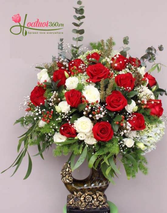 Bình hoa hồng đỏ sang trọng bao gồm: