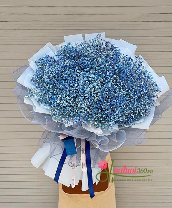 Tựa như một đại dương xanh thẳm hay bầu trời đầy sao, bó hoa baby xanh với hàng triệu đóa hoa baby li ti được kết thành một khối hoa khổng lồ, mang theo thông điệp về một niềm tin và hy vọng vĩnh cửu, bất diệt.