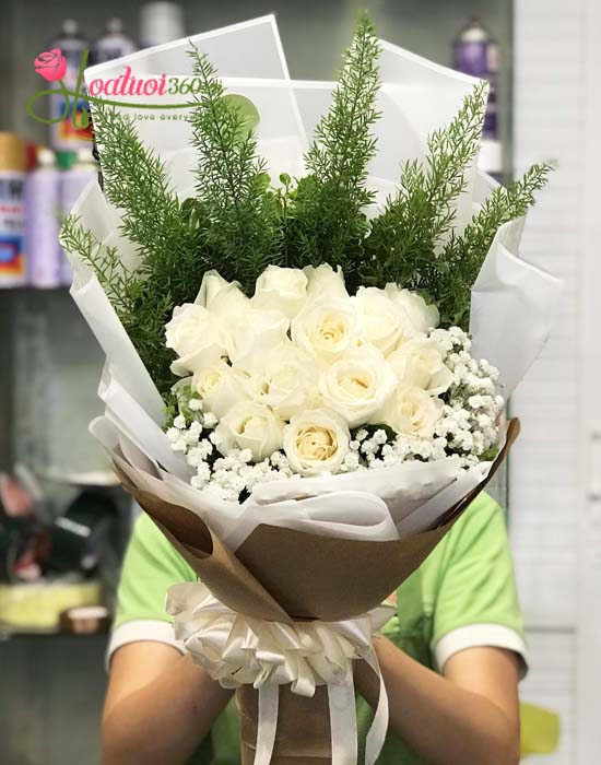 Bó hoa hồng trắng - Nhẹ nhàng sương khói
