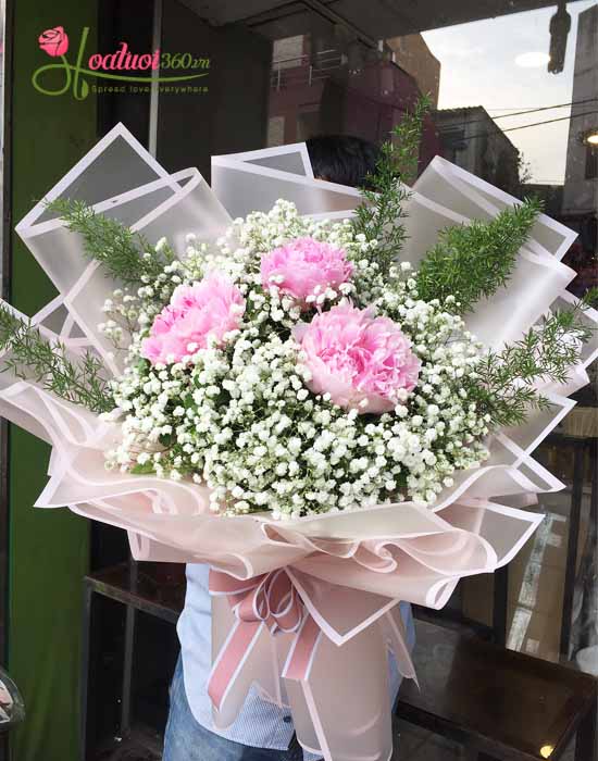 Mang tên 'Điều tuyệt vời nhất', bó hoa là bản giao hưởng ngọt ngào giữa 3 đóa mẫu đơn Hà Lan hồng kiêu sa và nền hoa baby trắng muốt. Tất cả được bao bọc tinh tế trong giấy gói Hàn Quốc cao cấp, toát lên vẻ đẹp sang trọng và lãng mạn. Đây là món quà hoàn hảo để bạn khẳng định người ấy là điều tuyệt vời nhất trong dịp sinh nhật, kỷ niệm ngày yêu hay một lời tỏ tình bất ngờ.