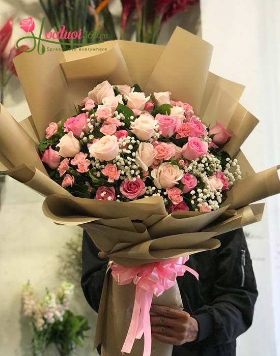 Sự kết hợp hài hòa giữa hoa hồng dâu và hoa baby trắng nhẹ nhàng mang đến thông điệp tình yêu ngọt ngào. Mẫu hoa bó dài "Tình ấm nồng" gợi cảm giác ấm áp, chân thành, như lời khẳng định của tình yêu sâu sắc.
