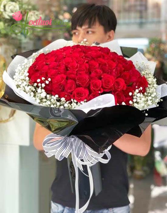 Bó hồng 99 bông kết hợp Baby Hà Lan đốn tim nàng