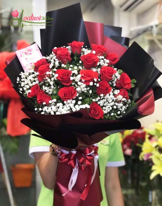 Bó hồng đỏ kết hợp hoa baby Hà Lan