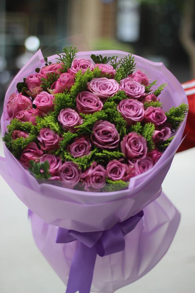 Bó hồng tím đẹp nhất bao gồm các loại hoa: