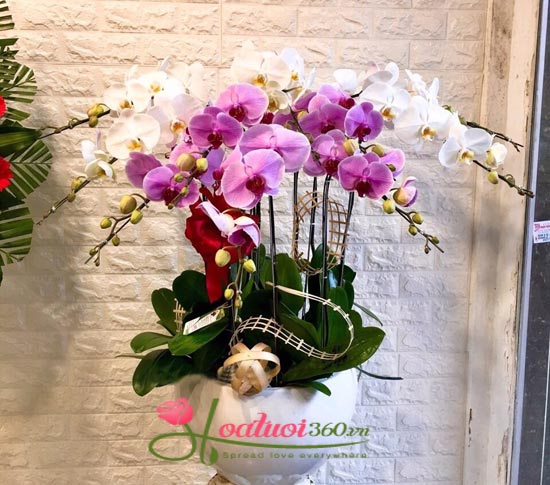 Chậu lan hồ điệp kết hợp chưng tết- Chúc mừng năm mới