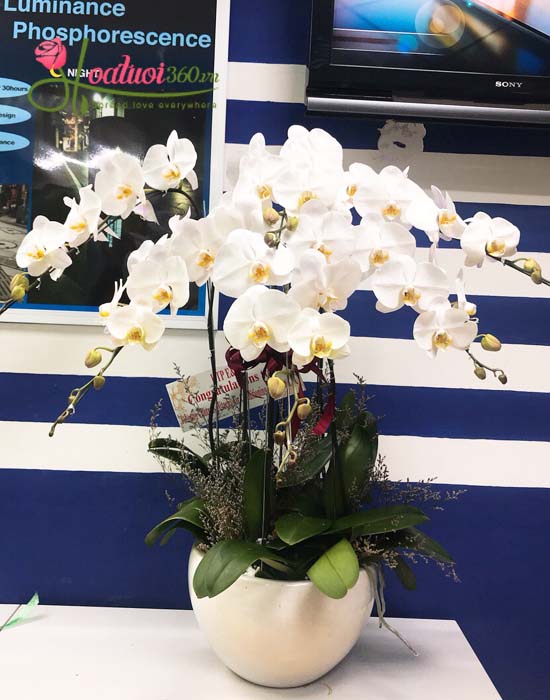 Chậu lan hồ điệp trắng- Sang trọng và đẳng cấp mang vẻ đẹp sang trọng và đẳng cấp. Lan hồ điệp trắng là loài hoa biểu tượng của sự tinh khiết, trong sạch. Trong tình yêu, lan hồ điệp trắng tượng trưng cho tình yêu chân thành. Trong tình mẫu tử, đây là loài hoa tượng trưng cho tình yêu thương vô bờ bến, sự khoan dung vị tha, ngược lại cũng thể hiện lòng hiếu thảo của bậc làm còn với đấng sinh thành.