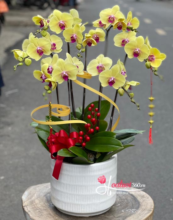 Chậu lan hồ điệp vàng - Nồng nàn sắc hoa