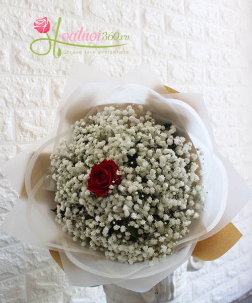 Bó hoa baby happy valentine 14-2 với chính giữa hoa hồng đỏ là chứng tỏ anh chỉ có mình em hoa bi, tình yêu anh dành cho em mãi mãi và là em là người duy nhất. Hoa baby trắng là thể hiện tình yêu trong sáng, tinh khiết. Bó hoa babay nhỏ xinh cùng giấy gói thật sang trọng và quý phái. Thích hợp tặng sinh nhật, kỷ niệm quen nhau, làm quen...