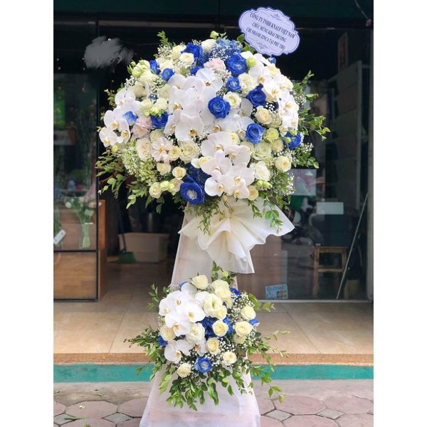 Lẵng hoa khai trương được kết hợp từ hoa hồng trắng, hoa hồng xanh, hoa lan hồ điệp , va hoa baby kèm thêm phụ kiện, lẵng hoa được trang trí mới lạ và độc đáo, với phong cách mới và ấn tượng, lẵng hoa sẽ làm cho tiền sảnh của bạn thật sự nổi bật, sang trọng. Mang phong cách mới lạ và ý nghĩa của sự thành công vinh hoa phú quý, thịnh vượng, lẵng hoa sẽ là quà tặng khai trương, chúc mừng tuyệt vời nhất cho lựa chọn của bạn.