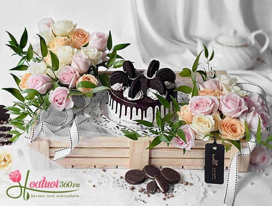Hoa tươi với bánh kem với những chiếc bánh ngọt ngào, nhiều màu sắc và kiểu dáng được xếp kèm với hoa tươi như một tác phẩm nghệ thuật. Giỏ hoa tươi với bánh kem phù hợp với tất cả mọi người, thường được tặng trong các dịp sinh nhật nhưng bạn cũng có thể dùng nó cho các dịp như ngày của ba, mẹ, ngày kỉ niệm cưới, ngày lễ tình nhân...bạn chỉ cần tìm hoa cho và bánh phù hợp cho mỗi dịp và đối tượng khác nhau là mọi thứ sẽ trở nên hoàn hảo.