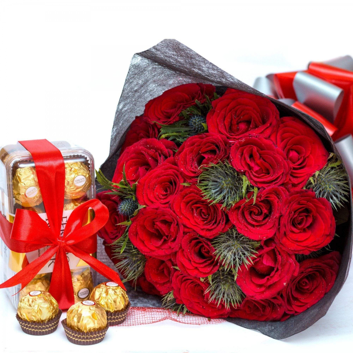 Socola cùng với hoa tươi là một sự kết hợp vô cùng phổ biến và được nhiều người ưa chuộng. Socola thường được bó chúng với hoa hồng hoặc để nguyên hộp tặng kèm với hoa cũng rất bắt mắt. Socola với hương vị ngọt đắng kèm thêm hương thơm từ những bông hoa tươi mang tới cho người được tặng cảm nhận được sự ngọt ngào, quan tâm và lãng mạn của bạn. Hoa tươi socola thích hợp cho những đôi lứa đang yêu, nên tặng món quà này vào các dịp như valentine, sinh nhật hay ngày lễ kỉ niệm.