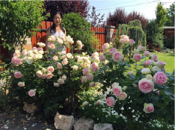 "Tôi yêu màu tím, vàng, hồng, trắng nên trồng nhiều loại hồng các màu này. Màu đỏ cũng rất đẹp, nhưng khi ngắm hồng đỏ, tôi thấy mình nhớ quê hương nhiều lắm, vì tôi thấy màu hoa này lần đầu tiên ở Việt Nam. Mặc dù trong vườn có rất nhiều gốc hồng đỏ đẹp tuyệt nhưng ít khi tôi đứng ở đó và chụp ảnh nhưng dạo này tôi đã mạnh dạn ngắm hồng đỏ và chụp hoa rồi" chị chia sẻ.